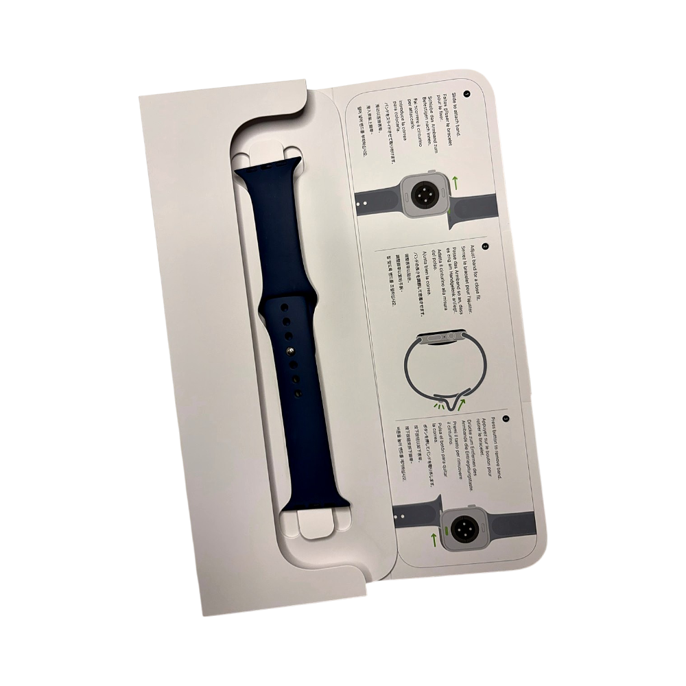 42 mm sport band ranneke M/L Apple Watchiin. Mukava, kevyt ja hengittävä materiaali. Kestävä ja tyylikäs jokapäiväiseen käyttöön tai vain urheiluun. Yhteensopiva 38, 40, 41 ja 42 mm Apple Watch kanssa. Soveltuu 150-200 mm ranteille. Säädettävä nastakiinnitys (lukitustappi). Kestävää fluoroelastomeeriä. Valmistaja Apple.