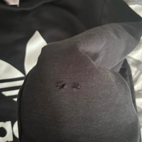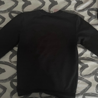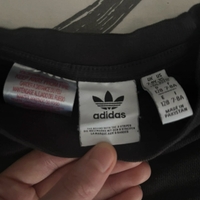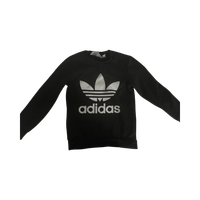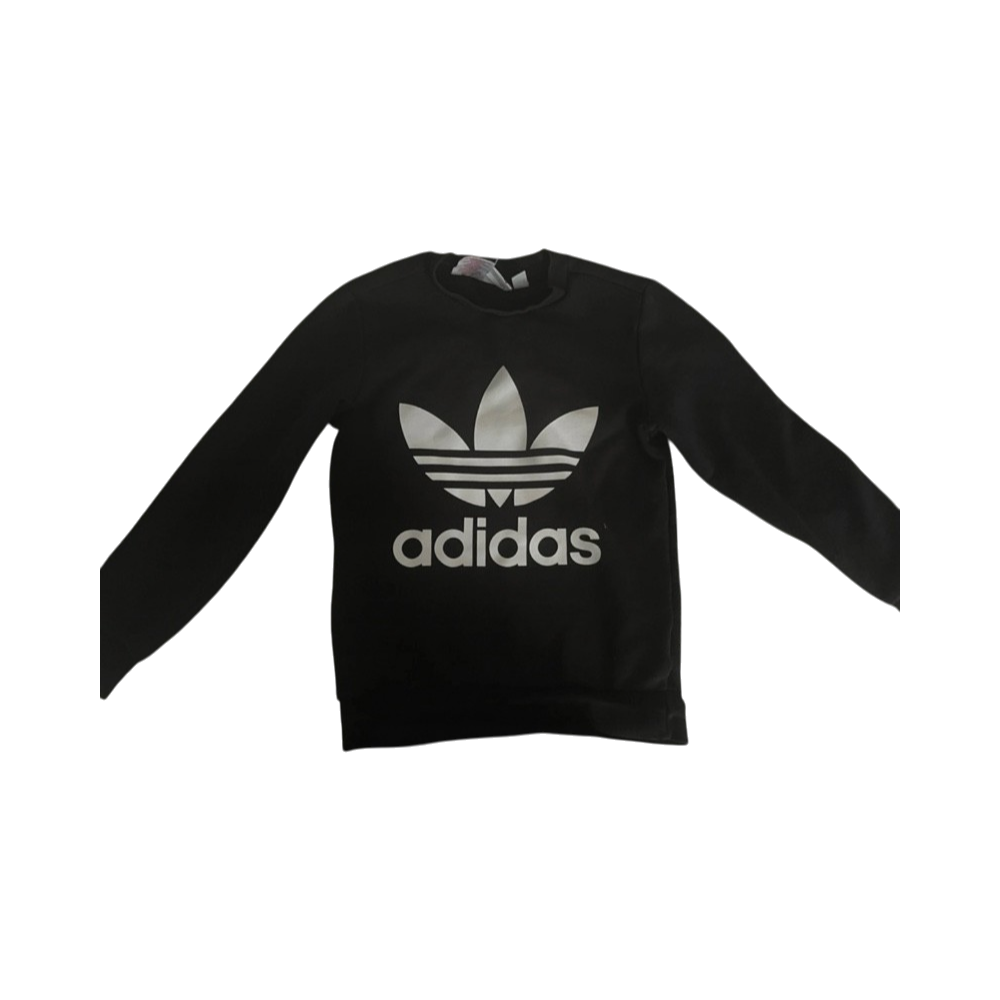 Kids black sweatshirt with white Adidas trefoil logo, minor wear.