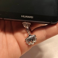Kaunis simpukkakoriste ja plugi joka suojaa laitetta pölyltä ja lialta.