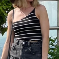 Mustavalkoraidallinen yksiolkaiminen Massimo Dutti toppi! 🖤🤍 Uudenveroisessa kunnossa. Viskoosia 74%, polyamidia 26%.