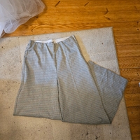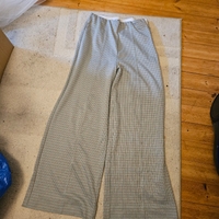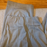 Sisälahkeen pituus noin 73 cm, kokonaispituus noin 98 cm. Ollut noin 155 senttisen päällä just sopivan pituiset. Käytetty kerran. Väri turkoosi haalean ruskeilla viivoilla. Ostettu zalandosta joulukuussa valmistujaisia varten. Sivussa vetoketju, joustava vyötärö. Takana feikkitaskut.