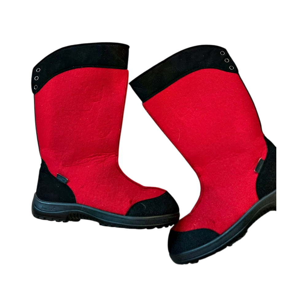 Kuoman klassiset huopikkaat, koko 36. Muuten oikein siistit mutta kuvissa näkyvät jäljet kummankin saappaan reunassa. Suutarilta kysytty ja voivat korjata, eli saa vielä pienellä vaivalla mahtavat saappaat talveen.