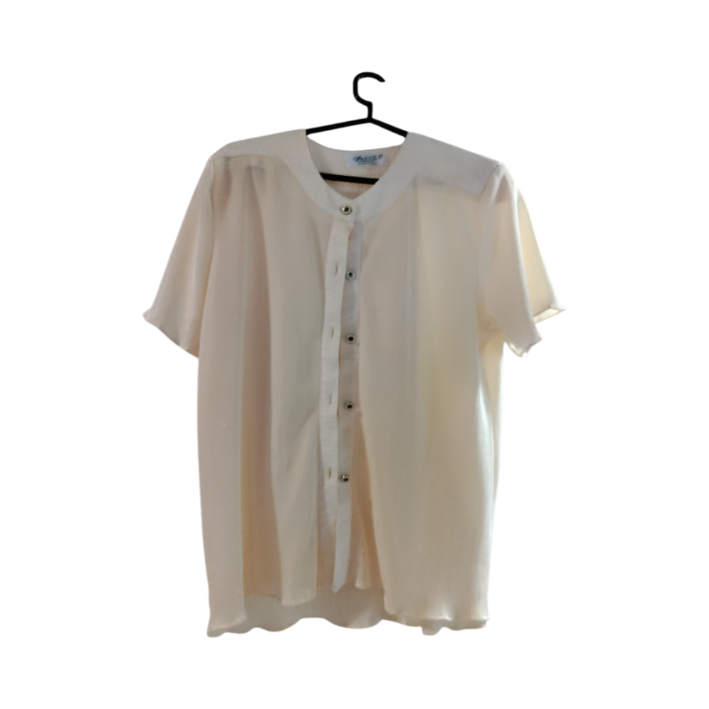 Lyhythihainen vaalea napitettava pusero, kevyt ja siisti.