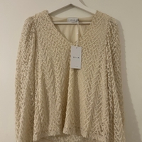V-neck long-sleeve top, size XS, cream.