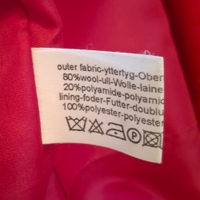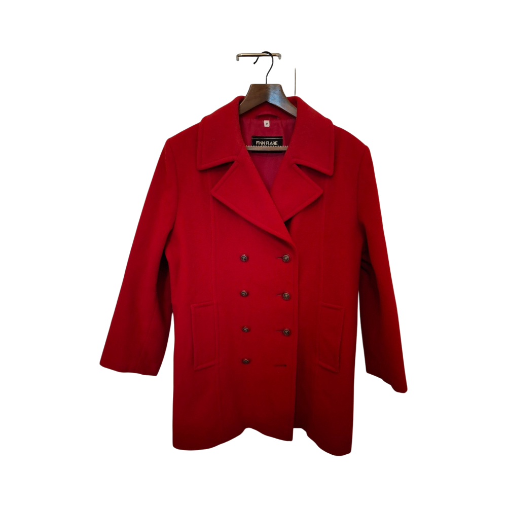 Naisten punainen villakangastakki, vuori polyesteriä. Olkatoppaukset.