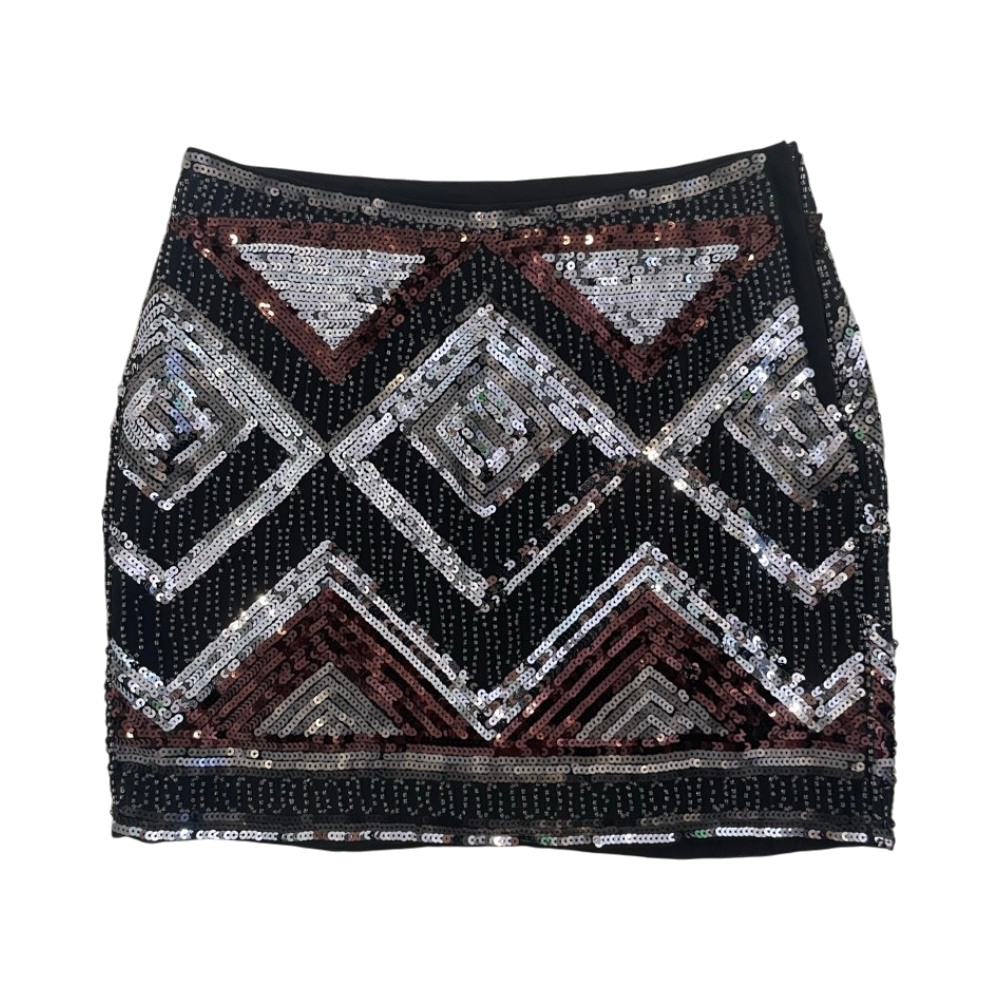 Lyhyt musta paljettimekko, geometrinen kuvio, vetoketju