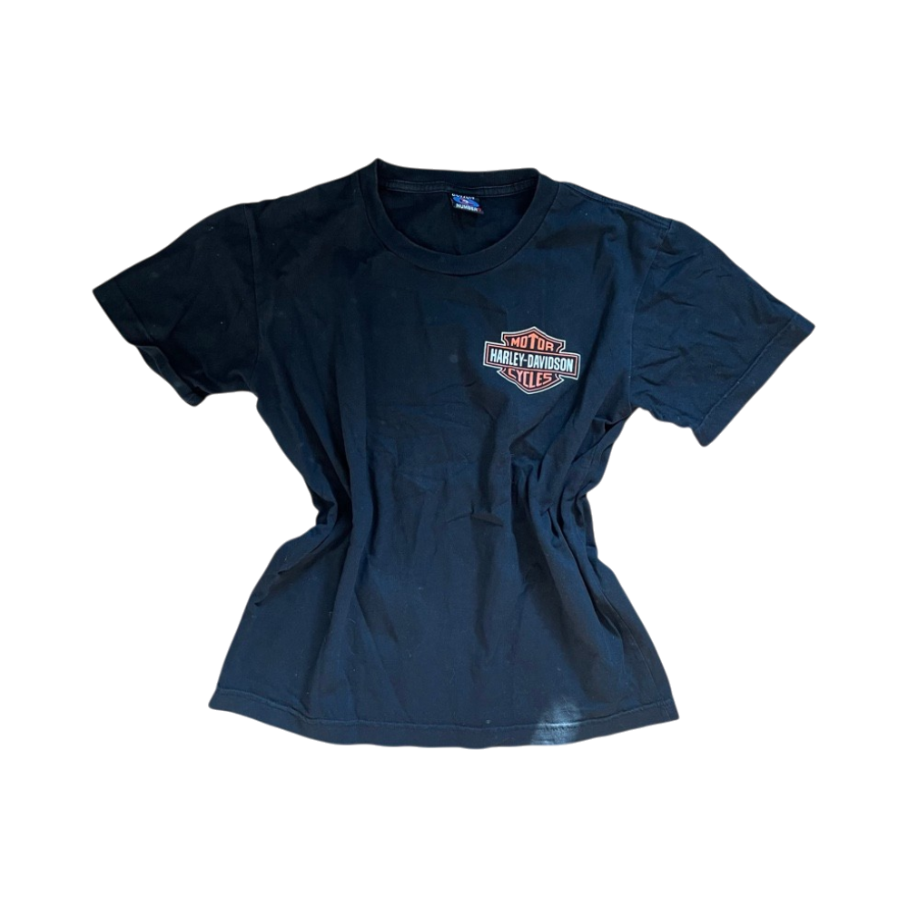 Mustapohjainen Harley-Davidson t-paita, painatus edessä ja takana. Gootti