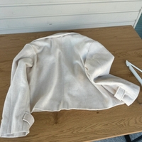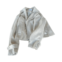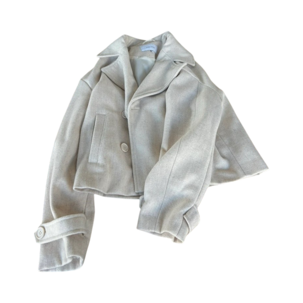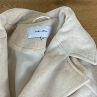 Lyhyt, vaalea villasekoitetakki, napit edessä, vuoritettu.