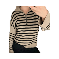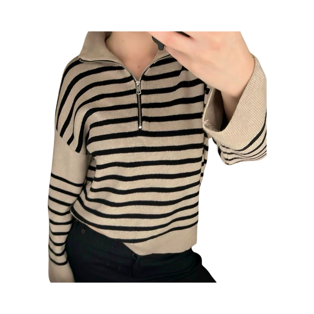 Beige striped zip-up sweater