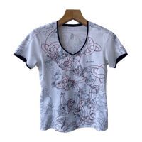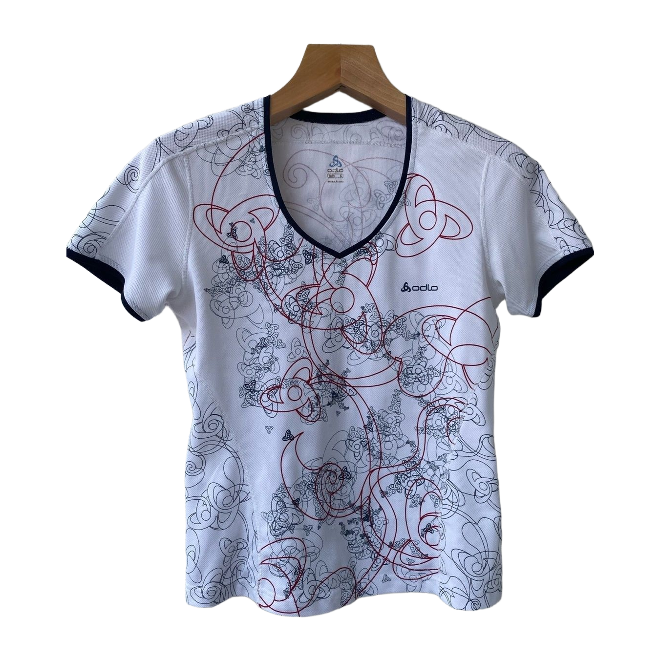 Paidan materiaali kevyttä ja hengittävää. V-aukollinen, korostaa hieman vyötäröä. Moitteettomassa kunnossa. Käytetty jonkun verran kevyeeseen urheiluun sisätiloissa, hyvässä kunnossa/ei hien hajuja!