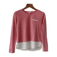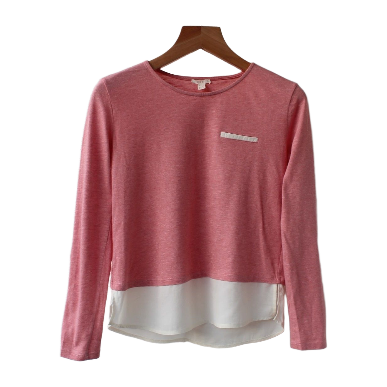 Vaaleanpunainen pitkähihainen paita valkoisilla yksityskohdilla. Hihat saa käärittyä ja painonapeilla kiinni. Koriste ’etutasku’. Helmassa pieni halkio sivussa.