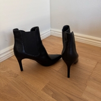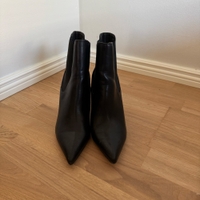 Tyylikkäät mustat saapas-korkokengät, hyvässä kunnossa. Piikki korko.