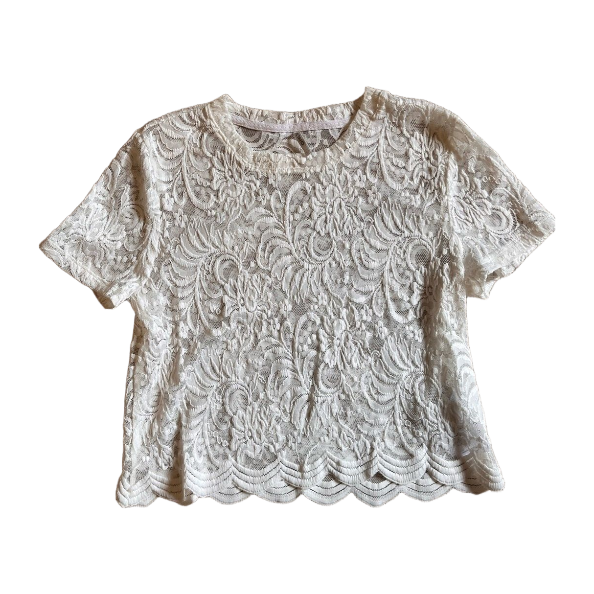 Valkoinen pitsinen cropp top. Ollut pari kertaa käytössä. Vastaa mielestäni kuin uutta.