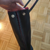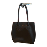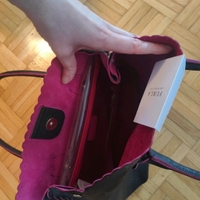Furlan musta laukku kauniilla piparkakkureunuksilla ja somisteilla. Pinkki sisäosa, nepparikiinnitys suuaukossa ja läpinäkyvä irrotettava sisätasku vetoketjulla. Sivussa laajennusmahdollisuus neppareilla. Käytetty muutaman kerran, ostettu vuonna 2012. Pohjan mitta 30, laukkuosan mitta 30.