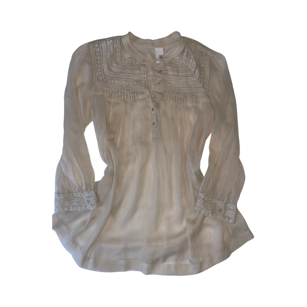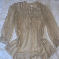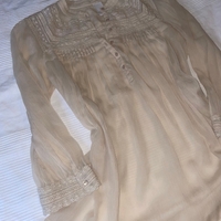 Kevyt beige pitsikoristeinen pusero, sopii s/m