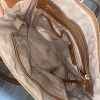 Olkalaukku. Hyvä kunto, pieniä käytön jälkiä näkyy. Voi yrittää putsata pois. Olllut käyttämättä jo useamman vuoden