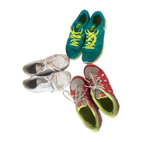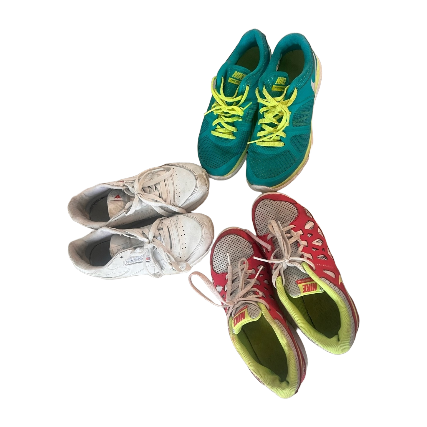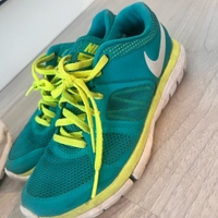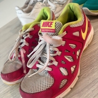 Pinkeistä oikean jalan kengästä yksi naru irti ( voi ehkä korjaa, mutta muuten käyttöä ei häiritse )