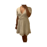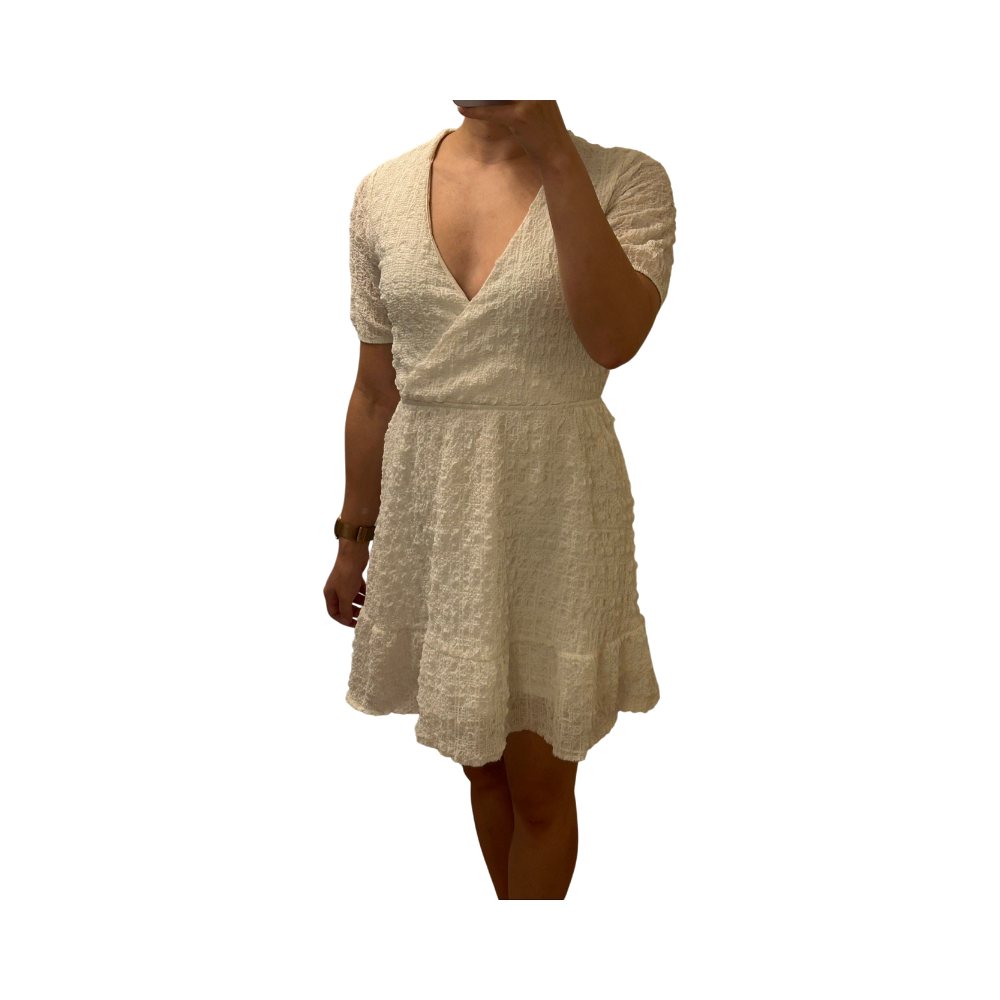 Valkoinen kreppikankainen mekko, jossa vuori. Koko S.