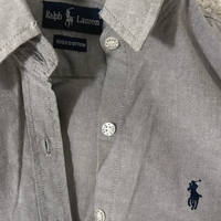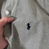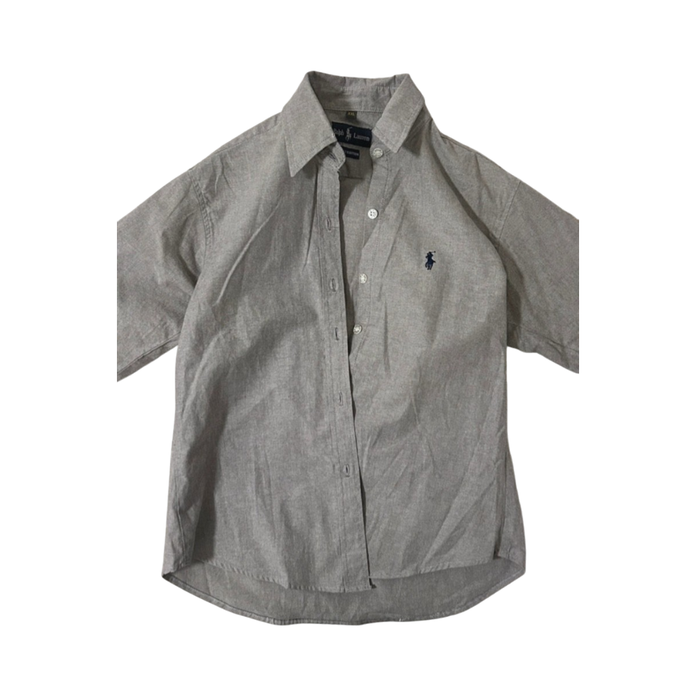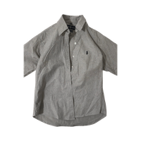 Grey cotton button-down shirt with embroidered pony logo. True to size S