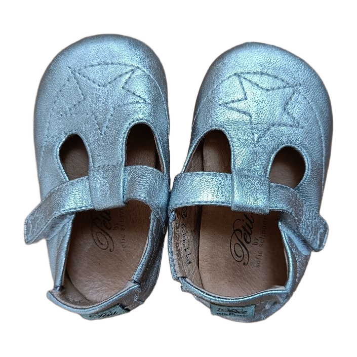 Pehmeät ja suloiset hopeanväriset nahkakengät vauvalle. Koko 20. Petit by Sofie Schnoor