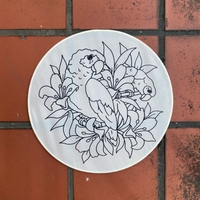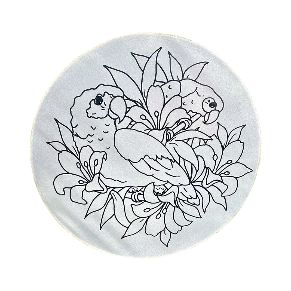 Pyöreä papukaija taulu / seinäkoriste / käsityökehys