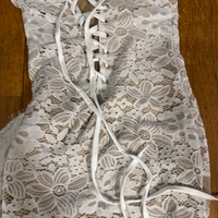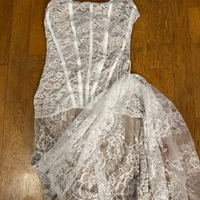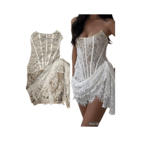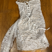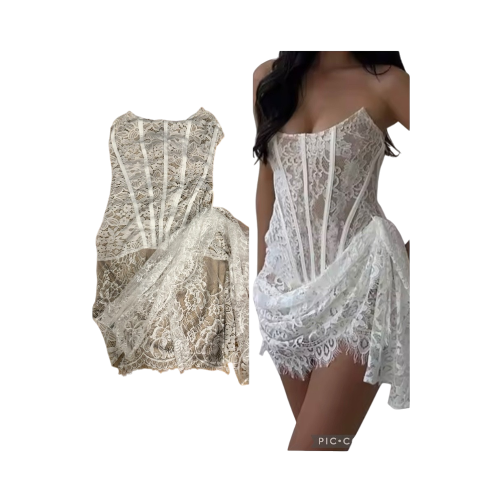 Pitsinen korsettimekko, nauhallinen takaosa ja nude-vuori.