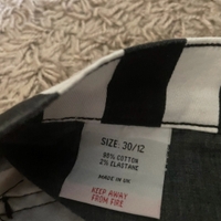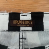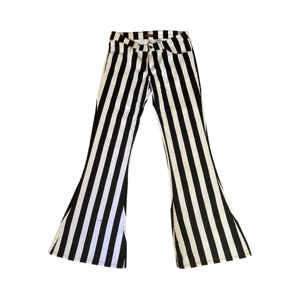Mustavalkoiset raidalliset flared-farkut, made in UK.