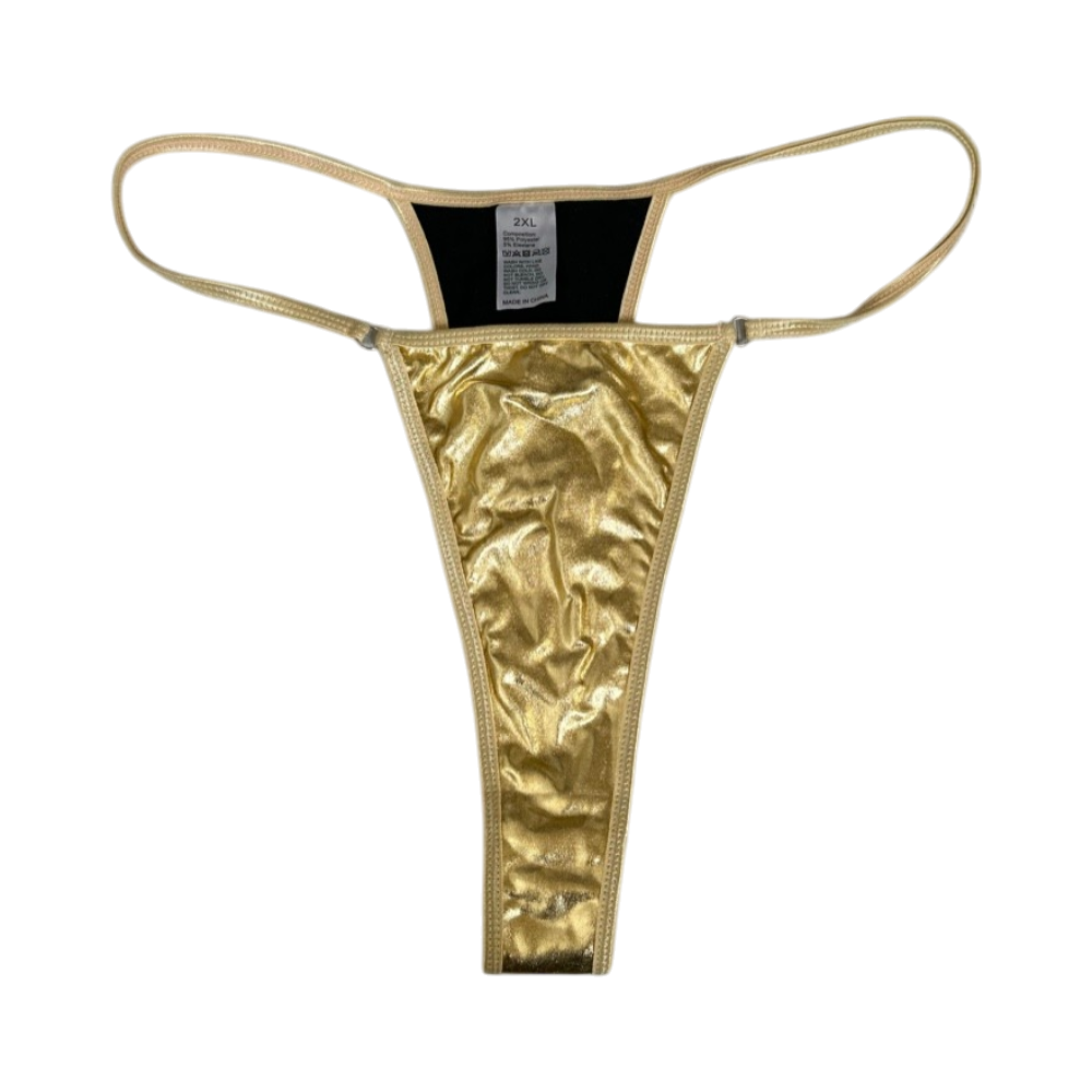 Kultaiset metallinhohtoiset string-alushousut, koko 2XL.