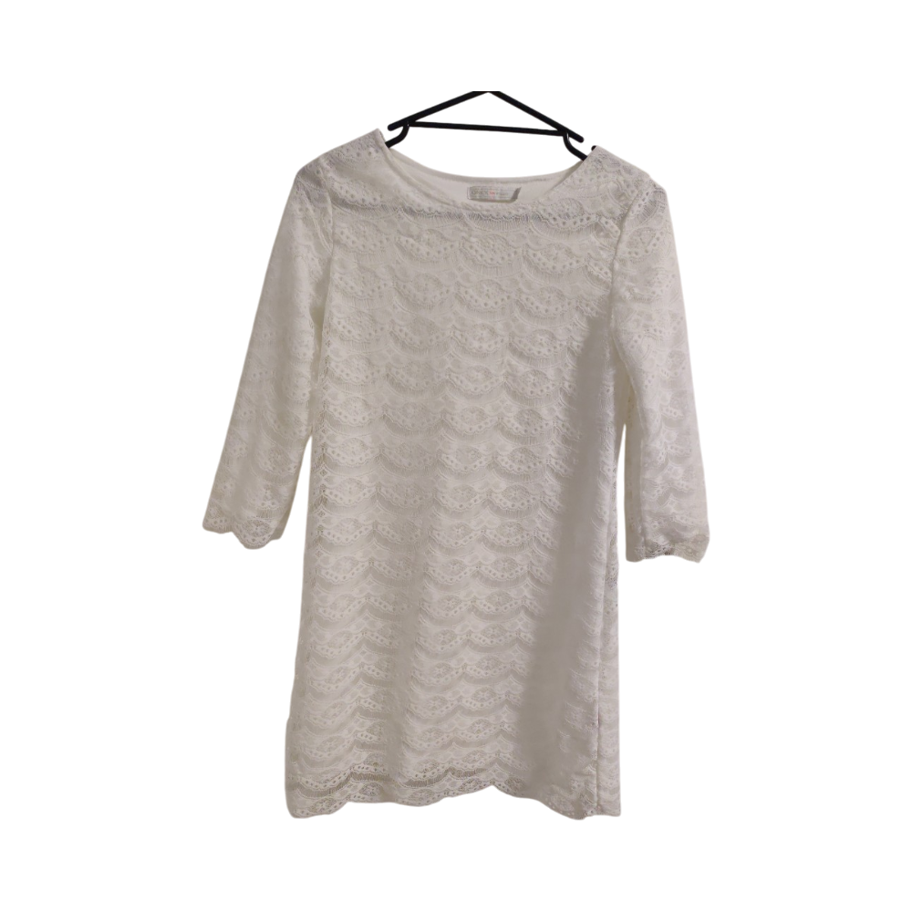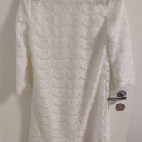 3/4 hihainen valkoinen pitsimallinen mekko, siisti käytetty kunto.