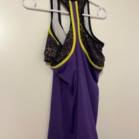 Violetti urheilutoppi. Sisällä kiinniommellut urheiluliivit. Koko M/40. Kaikai n 45cm, pituus n 70cm. Eläintalous MMM, lisätietoja saa kysymällä