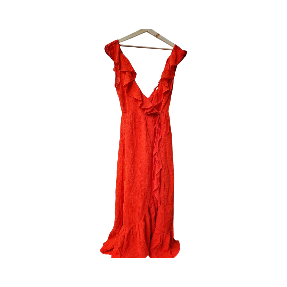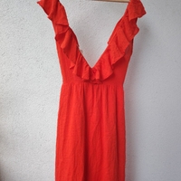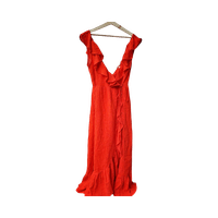Punainen wrap-mekko syvällä pääntiellä ja selkäaukolla. Hyvässä kunnossa. Koiratalous 🐾