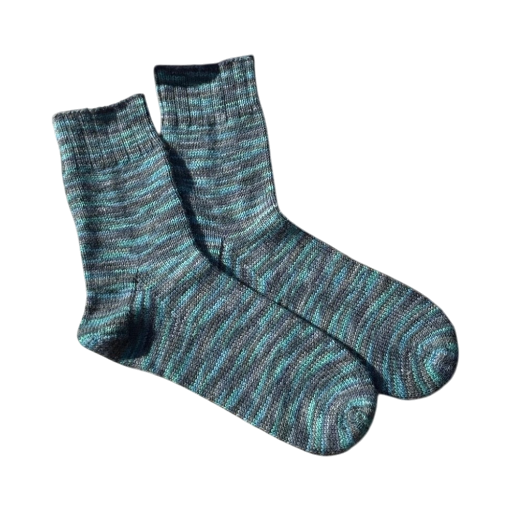 Käsinneulotut raidalliset villasukat, yhden koon, hyvä kunto.