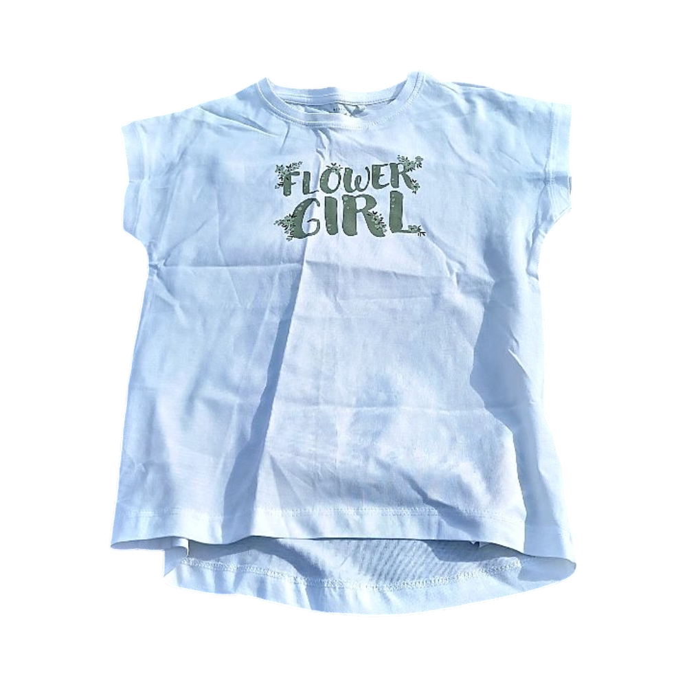 Lasten valkoinen t-paita 'Flower Girl', käyttämätön. Koko 122-128 cm.