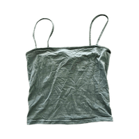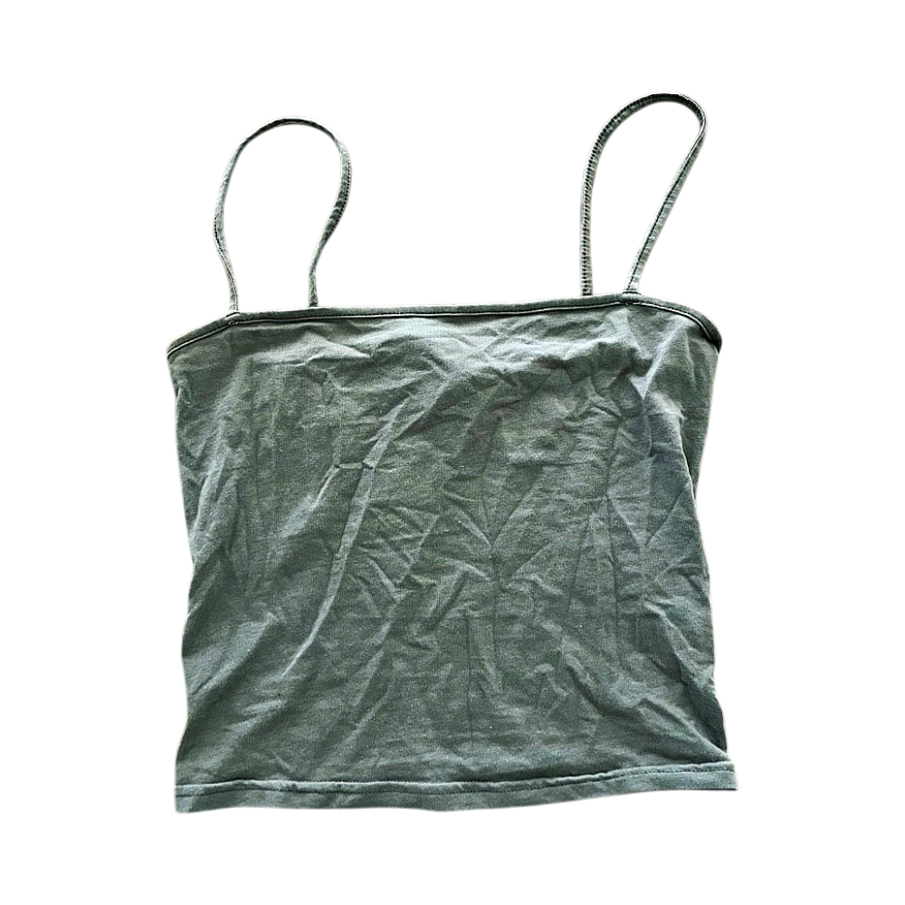 Harmaanvihreä toppi, koko XS. Materiaalilappu leikattu pois.