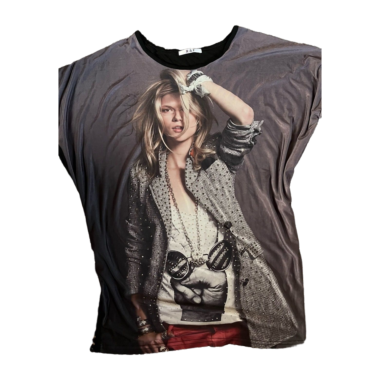 Upea R&F lepakkopaita/-mekko rennolla leikkauksella. Näyttävä, koristeellinen etuosa hienoilla strassiykstyiskohdilla ja painatuksella. Lyhyet hihat. Pituus olalta helmaan mitattuna n. 73 cm. Koko on yhdenkoon, joka sopii hyvin eri kokoisille riippuen siitä, kuinka rennon lookin haluaa. Materiaali erittäin joustavaa kangasta (65 % polyesteria ja 35 % puuvillaa). Toimii erinomaisesti niin paitana kuin mekkona!