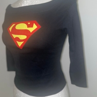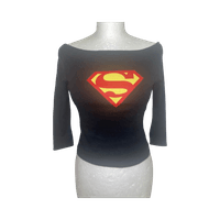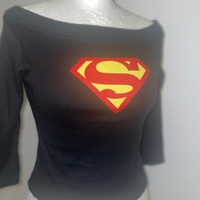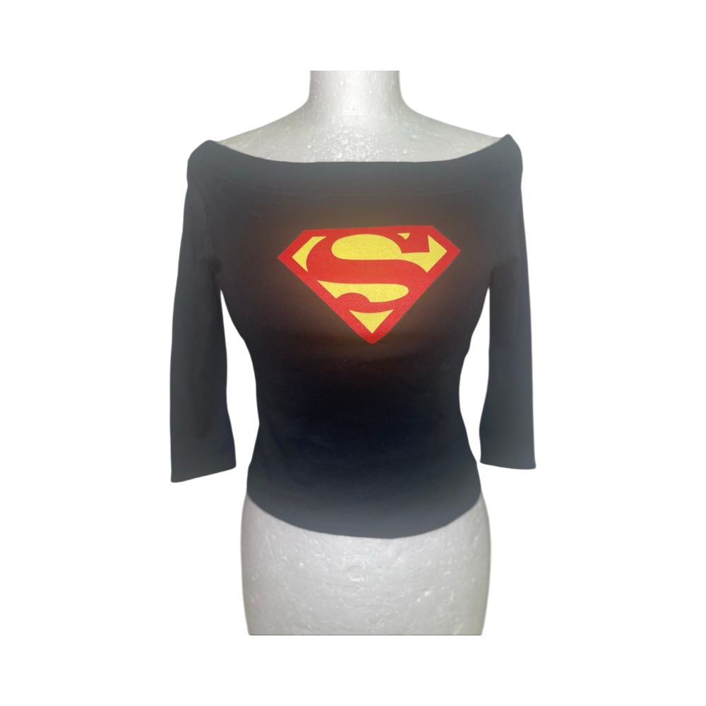Off-shoulder pitkähihainen paita, Superman-logo edessä.