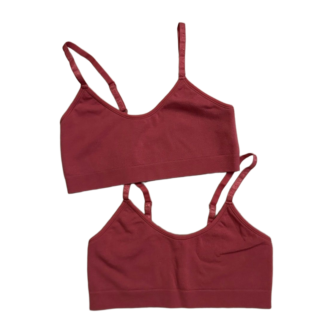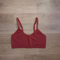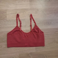 Myprotein seamless sport bra in color berry pink. There is no padding, light support. Adjustable strap with silicon wordmark on the straps.
