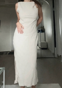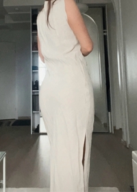 Beige linen blend midi dress