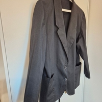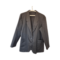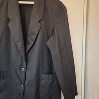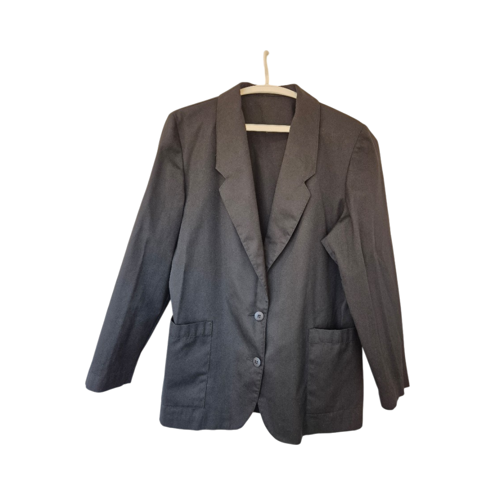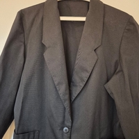 Myydään pieneksi jäänyt musta vintagejakku. Edessä kaksi nappia ja avonaiset taskut. Ei vuorta. Väri ei ole haalistunut, vaikka kuvissa näyttää hiukan siltä. Koko M/38. Kainalo-kainalo 54 cm ja olkapää-helma 71 cm. Materiaali 50% viskoosia, 45% polyesteria ja 5% muu tuntematon materiaali.
