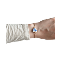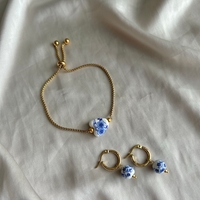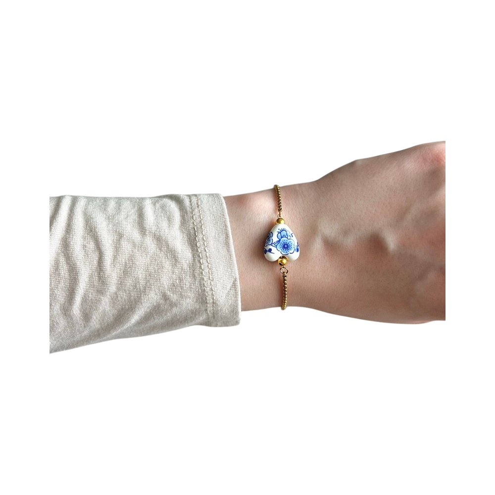 Käsintehty rannekoru lasihelmillä. Saatavilla sekä hopeisena että kultaisena. Säädettävä pituus. Yhteensopivia korvakoruja myös saatavilla.