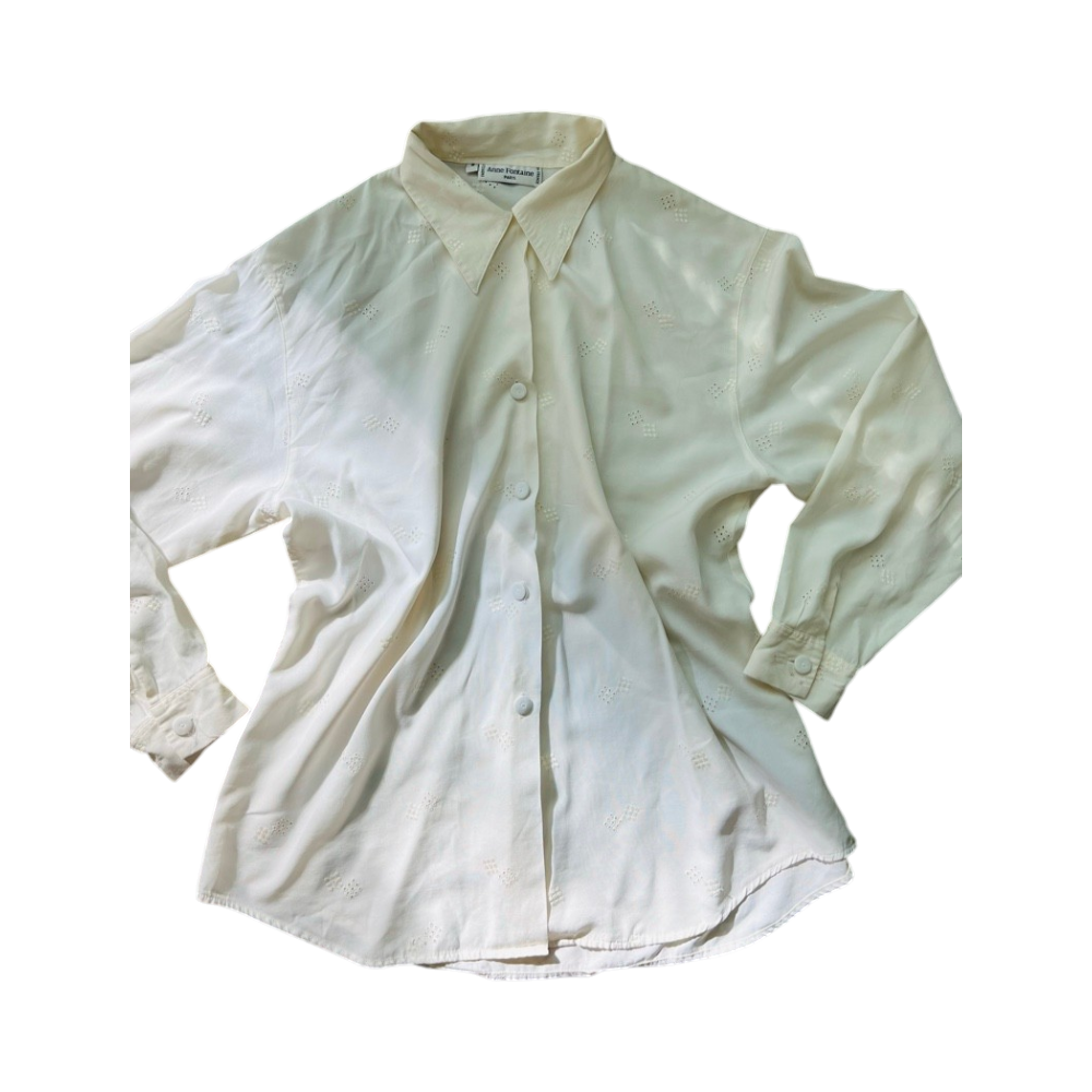 Kaunis koristeellinen Anne Fontaine Vintage paita, todella siistissä kunnossa. Kokomerkintä 3, vastaa arviolta kokoa l/xl. Pituus 69cm ja kai kai mitta noin 56cm. Hyvin laskeutuva materiaali.