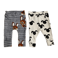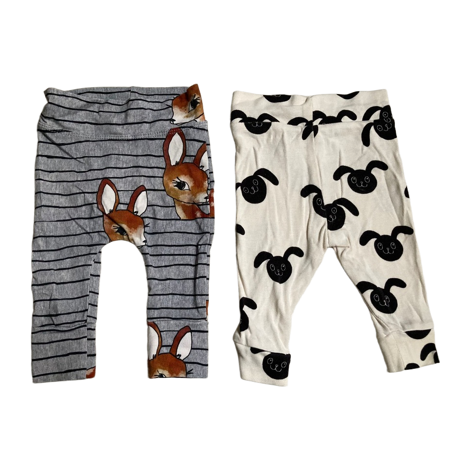 Kahdet vauvan leggingsit, oikein hyvä kunto. Mini rodinin housut ja verson puoti bambipiilo kankaasta ommellut housut.