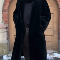 Pitkä tekoturkis, hyvässä kunnossa. Napit otettu pois.