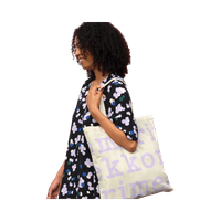 Beige-lilac puuvillainen kangaskassi, pitkä kantohihna. Aivan uusi sekä uutta marimekon tuotantoa.