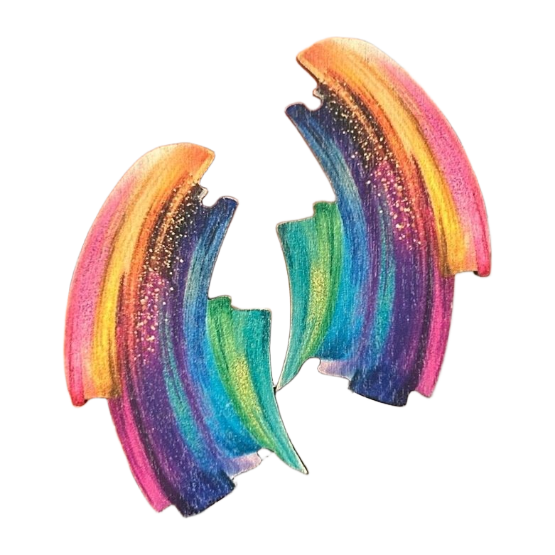 Tosi vähälle käytölle jääneet kotimaiset korvikset. Ei myydä enää. Korujen puuosat kotimaista koivuvaneria, eli ovat tosi kevyet, mutta kestävät. Nappikorun tapit kirurginterästä. 😊🌈