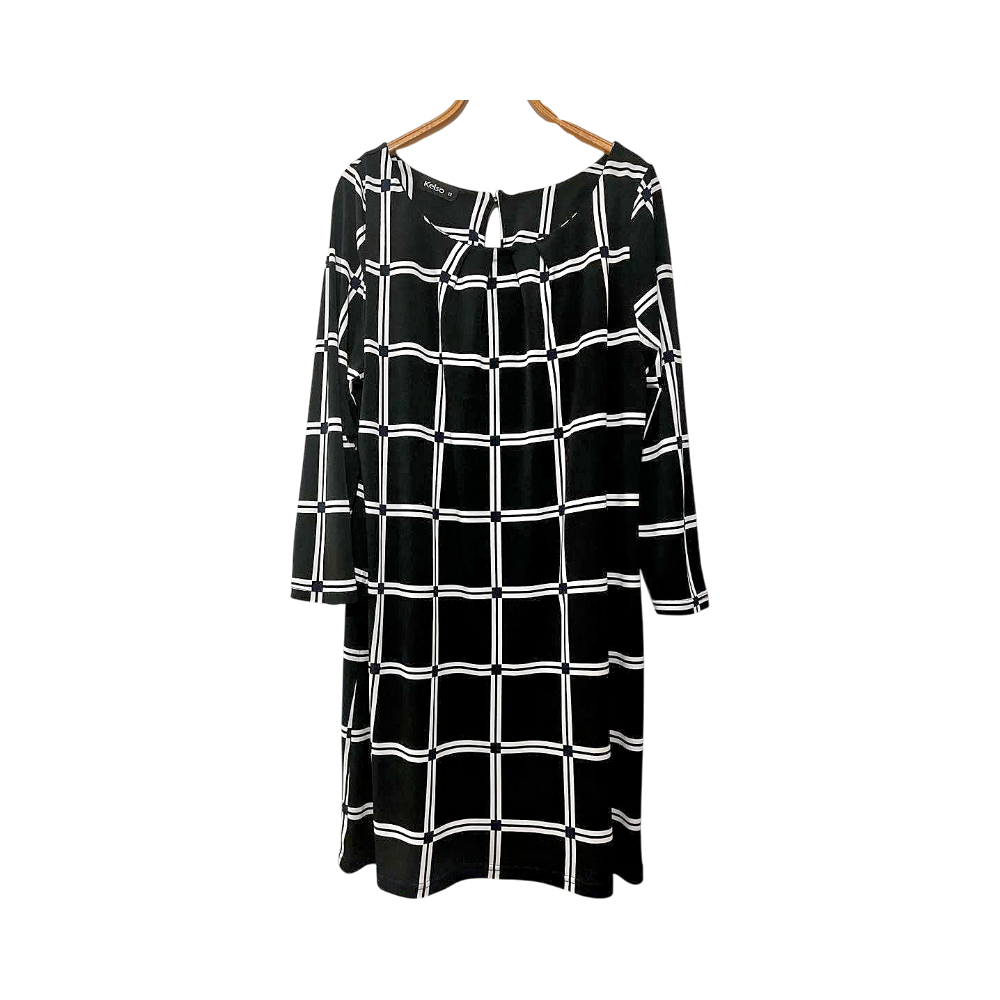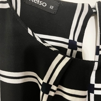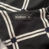 Kelso-merkkinen rento ja tyylikäs mekko, koko 12/L/40. Avara pyöreä kaula-aukko ja sen alla pientä laskostusta, takana nappukiinnitys. Pituus olka -helma 92 cm, ka-kai 62 cm, hihan oiruus 56 cm. Joustavaa materiaalia. Hyvin vähän käytetty.