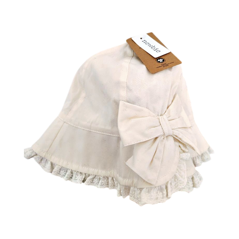 Lasten hattu röyhelöillä ja rusetilla, uusi.