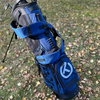 Kevyt seisova golfbag, kaksinkertainen olkahihna ja taskut. Tämän kauden ollut käytössä, ei oikeastaan mitään kulutuksen jälkiä. Hinta ehdotuksia tulemaan!