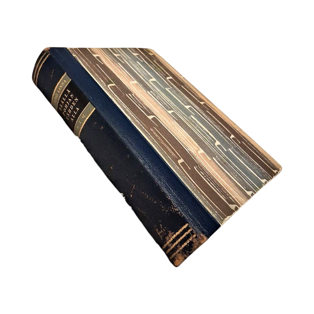 Ulkoasu: Etu- ja takakansi ovat hyvässä kunnossa, pientä kulumaa reunoissa. Selkämyksessä on selkeämpää kulumaa.