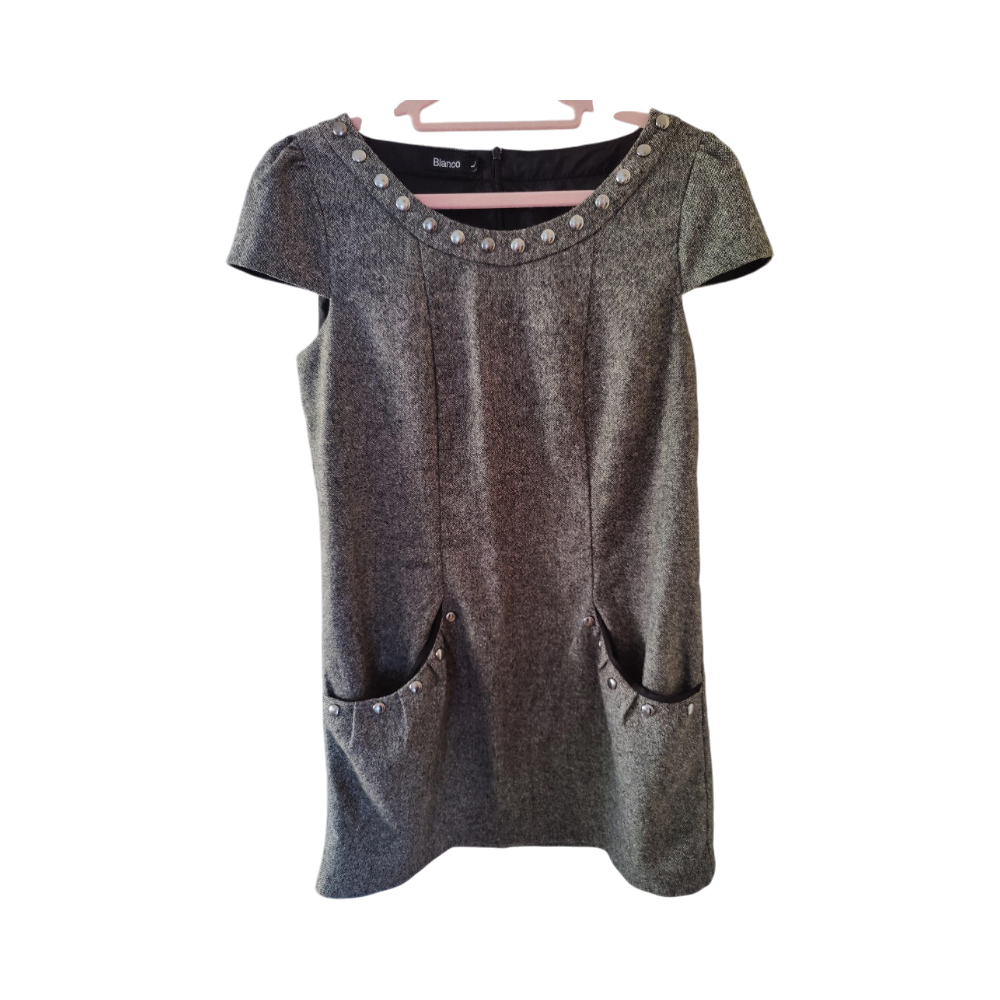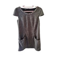 Harmaa niittikoristeinen mekko